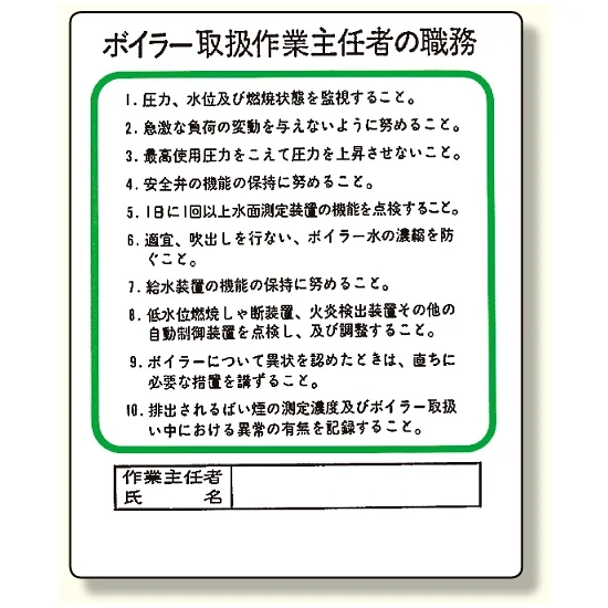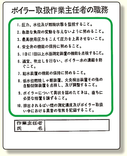 - 作業主任者職務板 ボイラー取扱 (356-13)