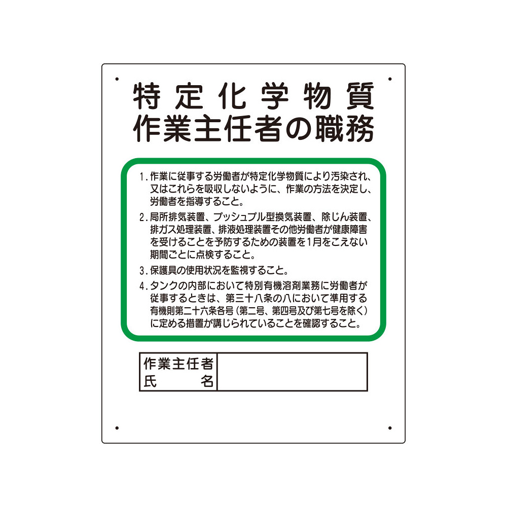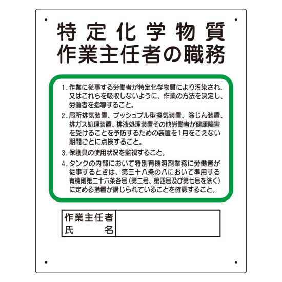 商品説明:特定化学物質 作業主任者職務板 (356-17C)