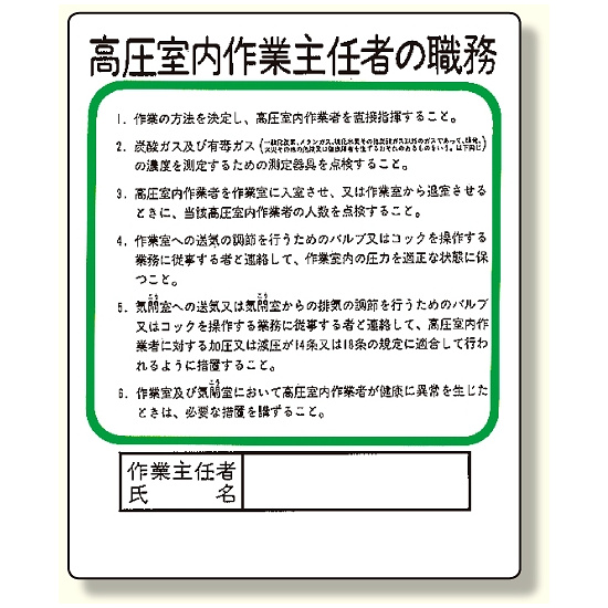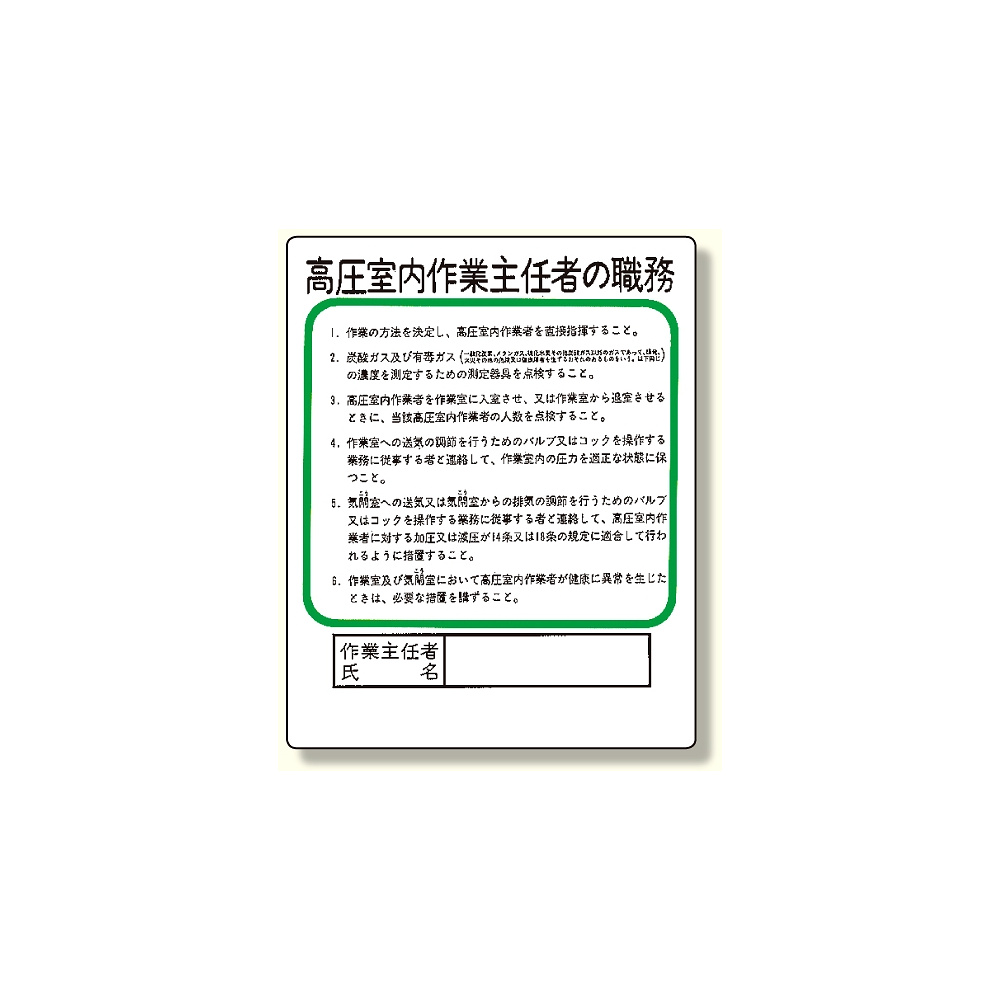 商品説明:作業主任者職務板 高圧室内.. (356-19)