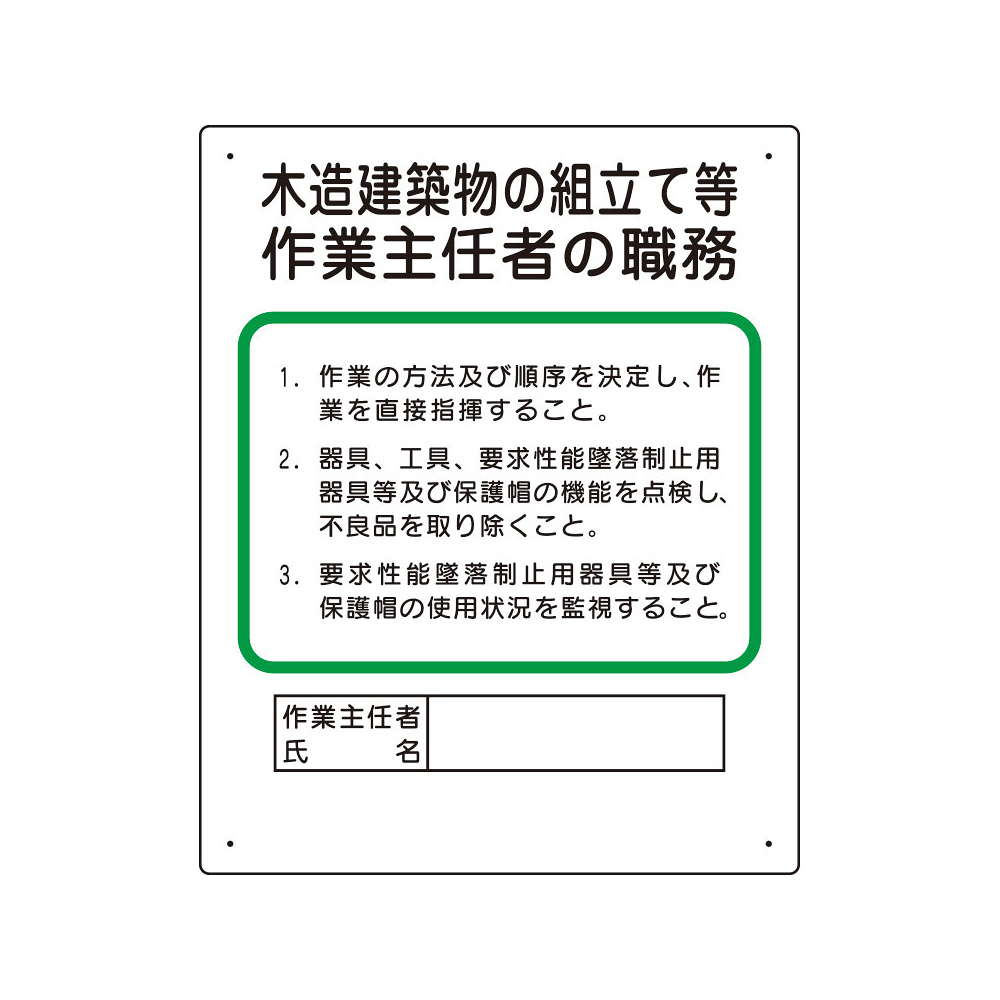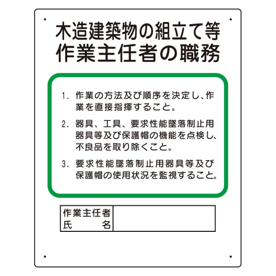 - 作業主任者職務板 木造建築物の組立て等