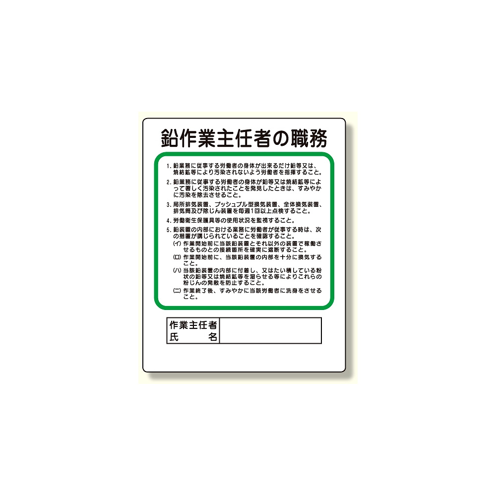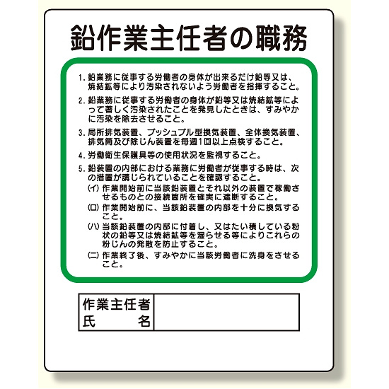 - 作業主任者職務板 鉛作業主任者 (356-28A)