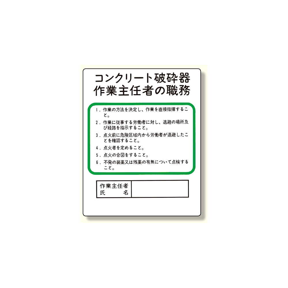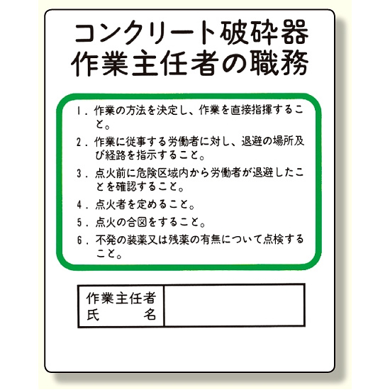 - 作業主任者職務板 コンクリート破砕器