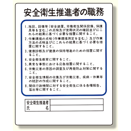 作業主任者職務板 安全衛生推進者 (356-31)の商品情報