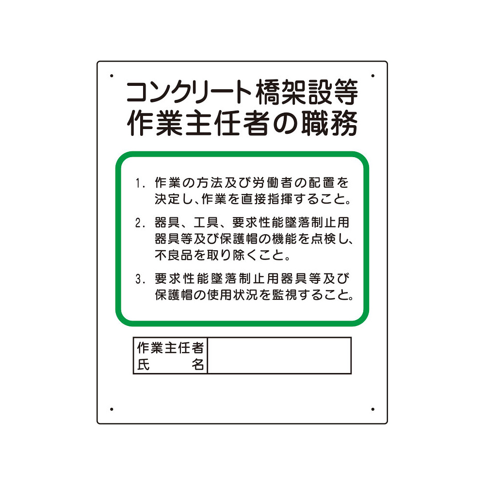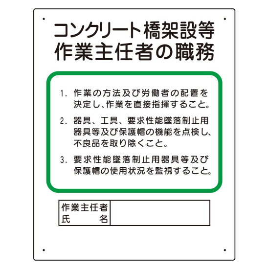 - 作業主任者職務板 コンクリート橋架設等 (356-33A)