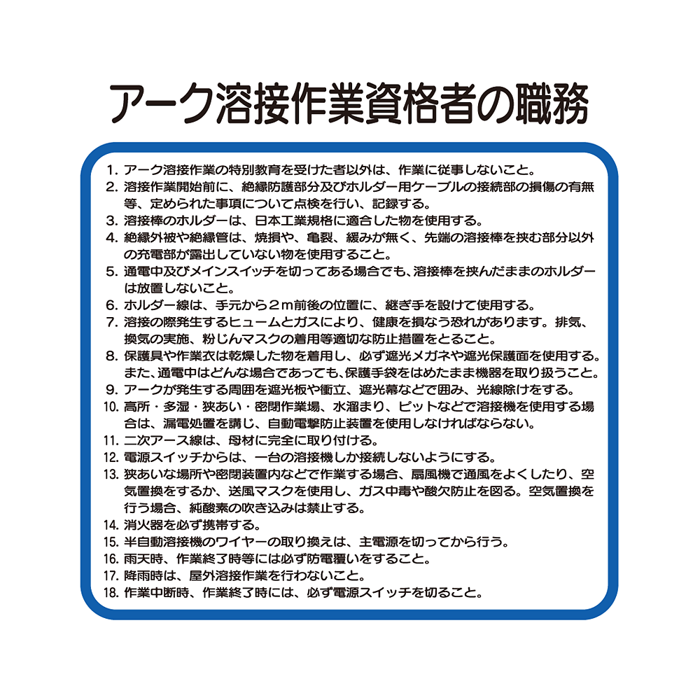 - 作業主任者職務板 アーク溶接作業資格者