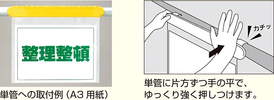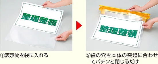 色々な用途に使えて便利な単管(48.6mmΦ)用バインダー!特許出願中 ラミネート加工した表示物が付けられる(B5?A3サイズまで) ※ラミネートフィルムは付いておりません。 ◆ラミネートフィルム穴開け用ガイドメモリ付きでセンター出しが簡単! ◆適合パンチ機:標準的な穴径5.5?6mm/穴間隔80mm1 ●ラミネーターフィルム表示蓋を開き用紙ガイドに用紙を合わせ、フィルムのセンターに印を付け、お手持ちの2穴パンチ機で穴開けし、2カ所の突起に穴を合わせ蓋を閉じてください。 (適合パンチ機:穴径5.5?6mm/穴間隔80mm)