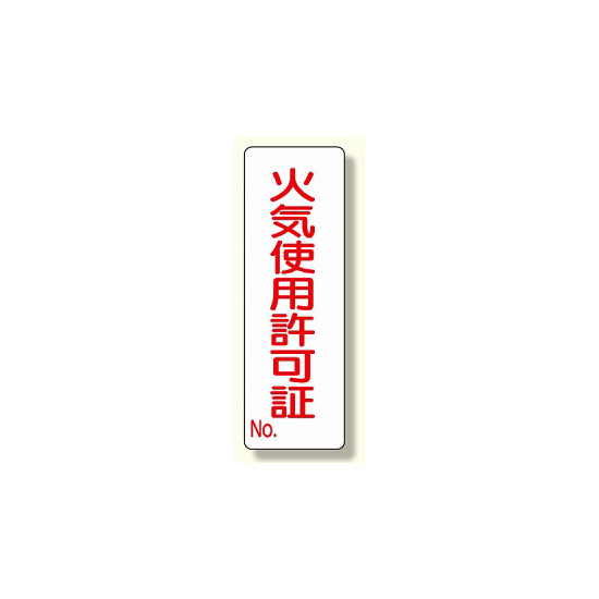 短冊型標識 表示内容:火気使用許可証 (359-85)