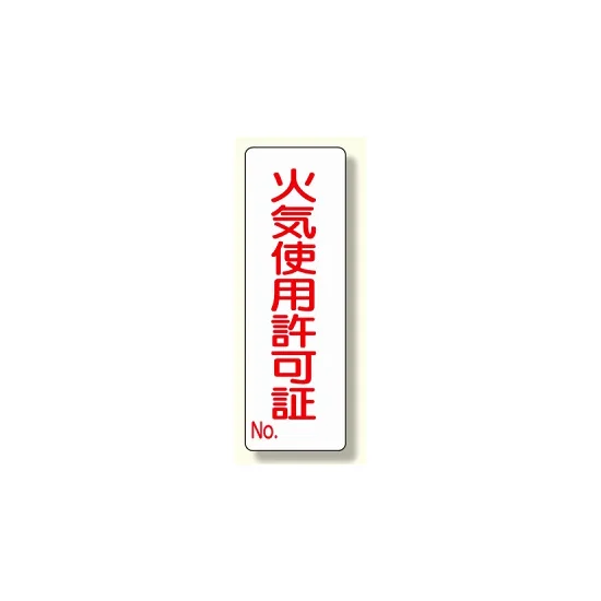 短冊型標識 表示内容:火気使用許可証 (359-85) の商品詳細