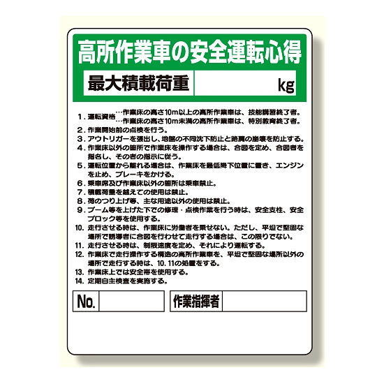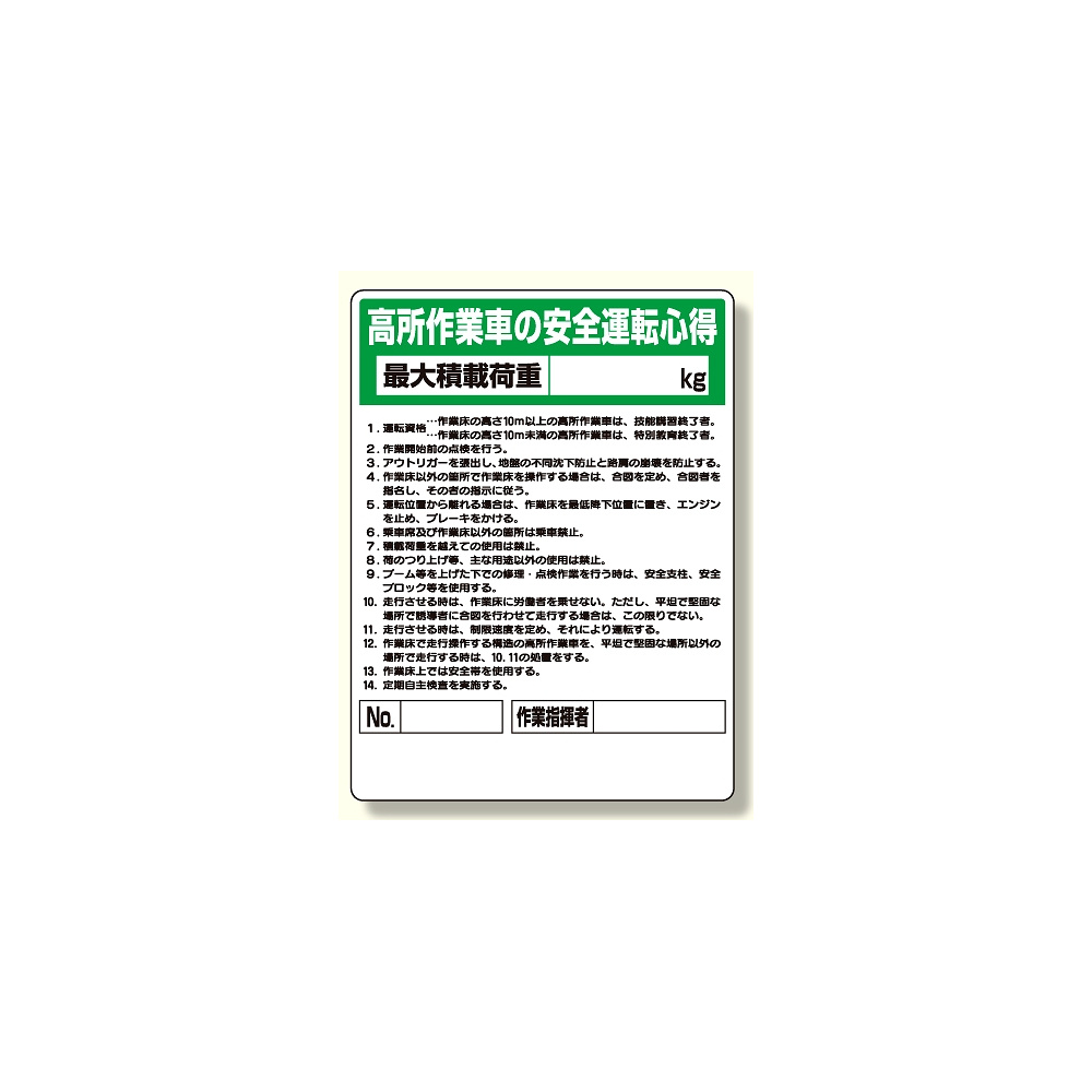 商品説明:標識 高所作業車の安全運転心得 (332-04A)