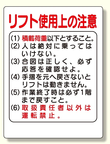 リフト関係標識 リフト使用上の注意