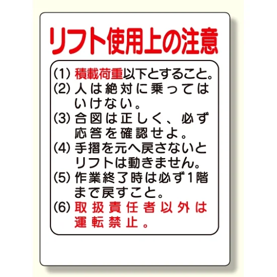リフト関係標識 リフト使用上の注意 (331-03)を実際にご利用いただいたお客様の声や、使用感に関するレビュー・評価をご紹介しています。
