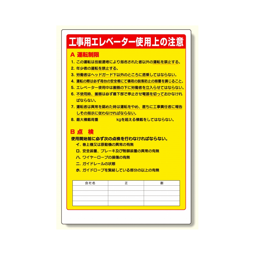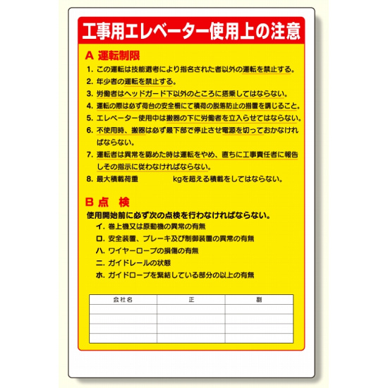 リフト関係標識工事用エレベータ (331-05A)