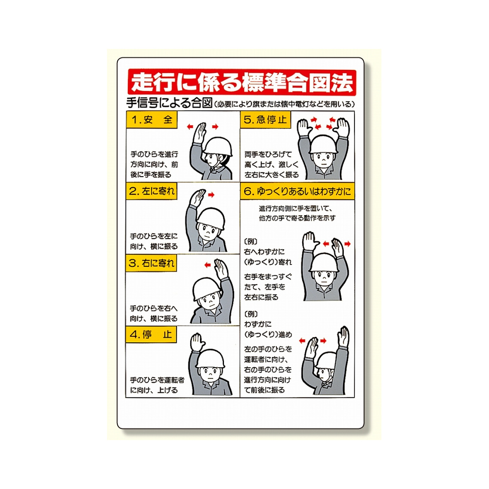 商品説明:玉掛関係標識 歩行に係る標準合図法 (327-34)