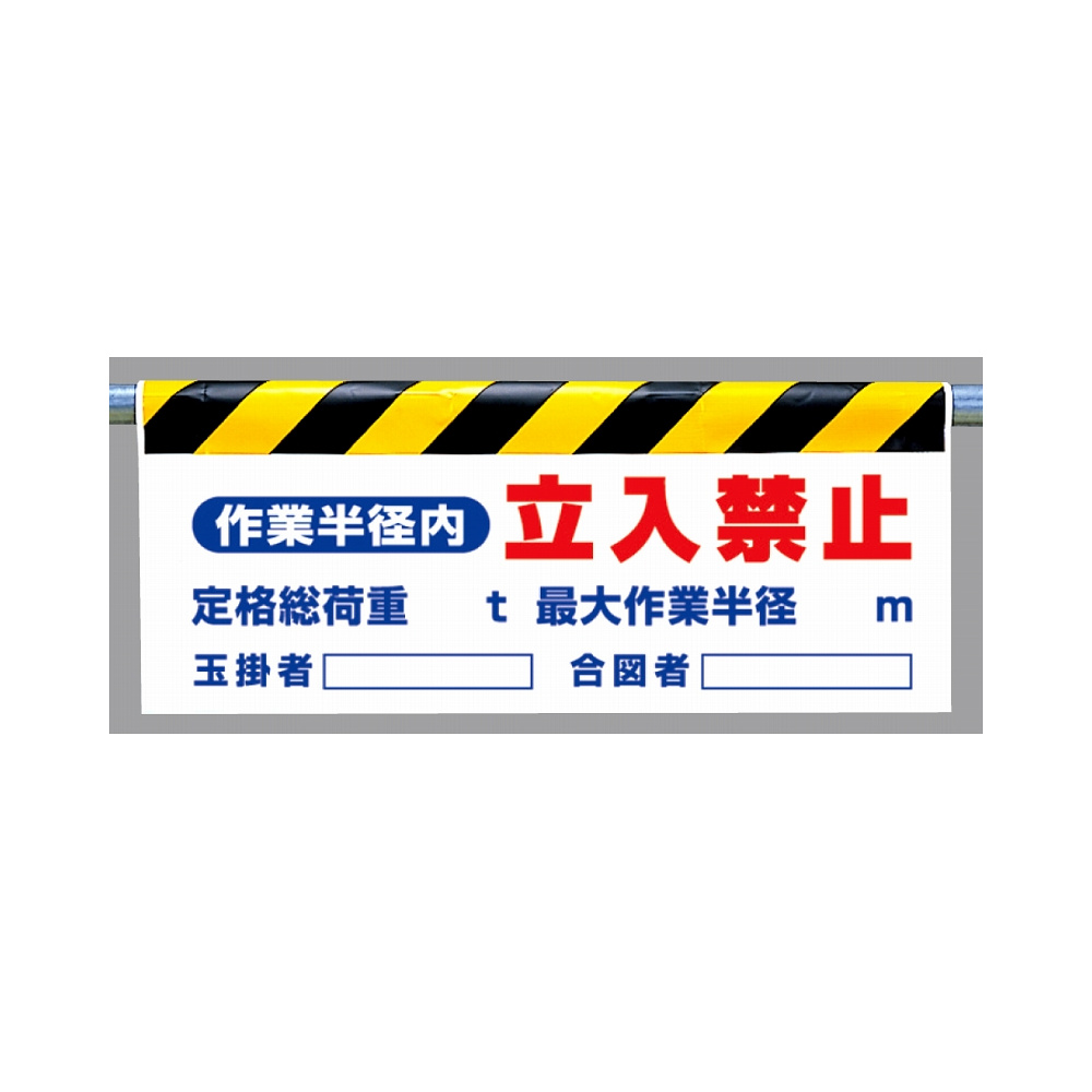 ワンタッチ取付標識 作業半径内立入禁止 横長500×900mm (342-24)
