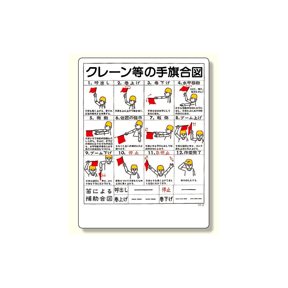 商品説明:玉掛関係標識 クレーン等の手旗合図 (327-30)