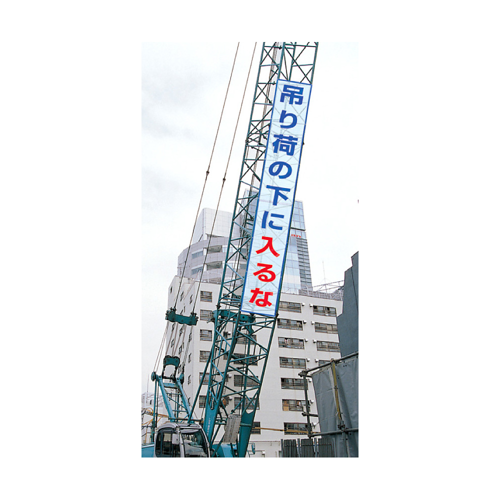 商品説明:メッシュ横断幕 吊り荷の下に入るな (352-40)