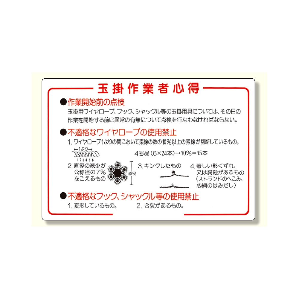 商品説明:玉掛関係標識 玉掛作業者心得 (327-07)