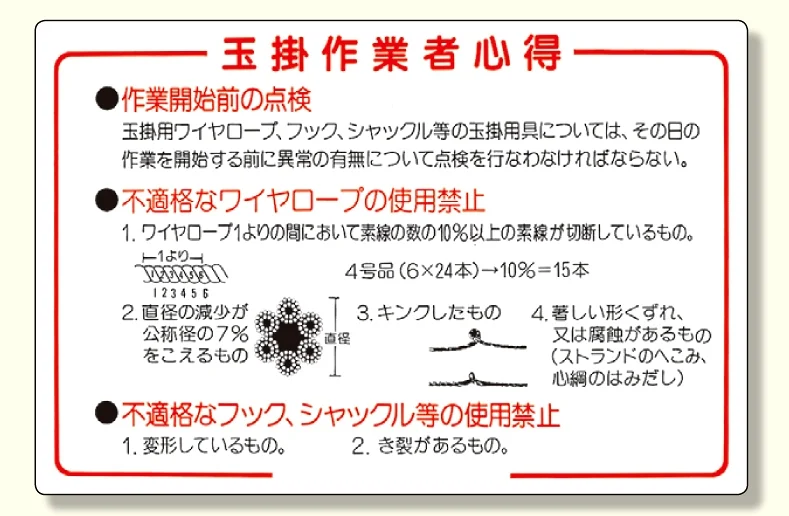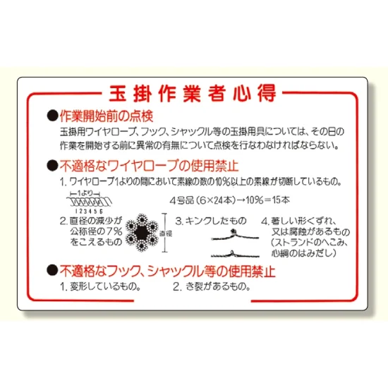 玉掛関係標識 玉掛作業者心得 (327-07) の商品詳細