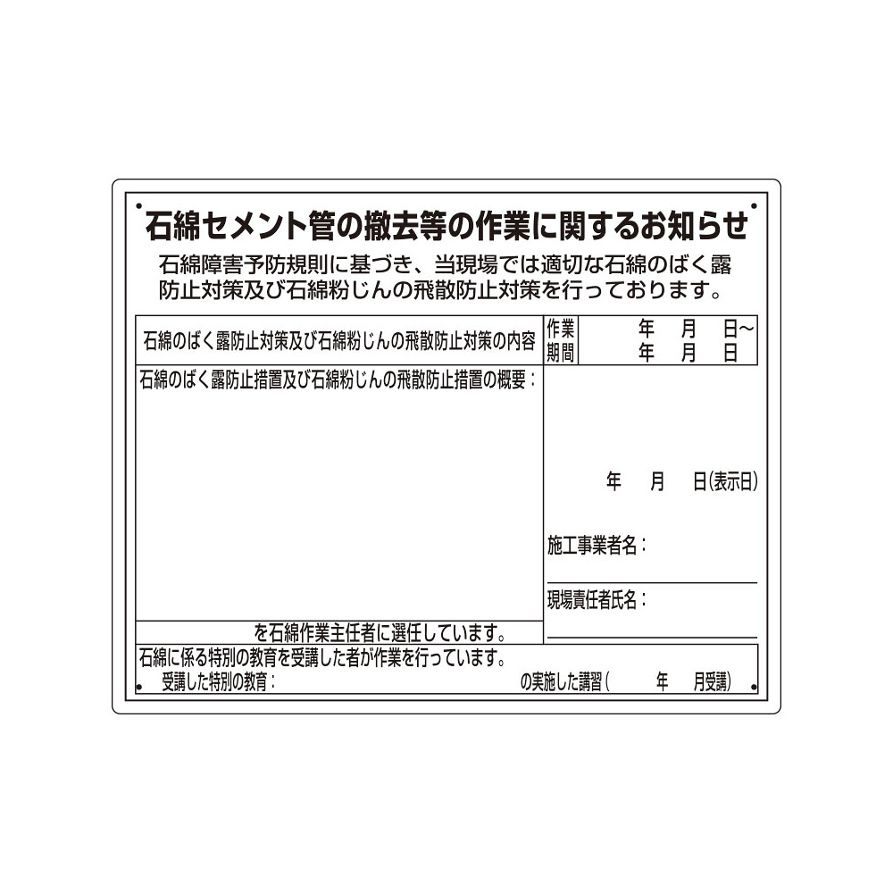 - 石綿標識 石綿セメント管の撤去等の作業…