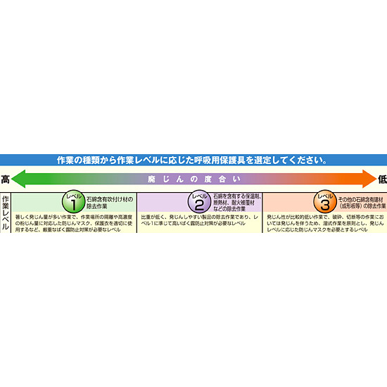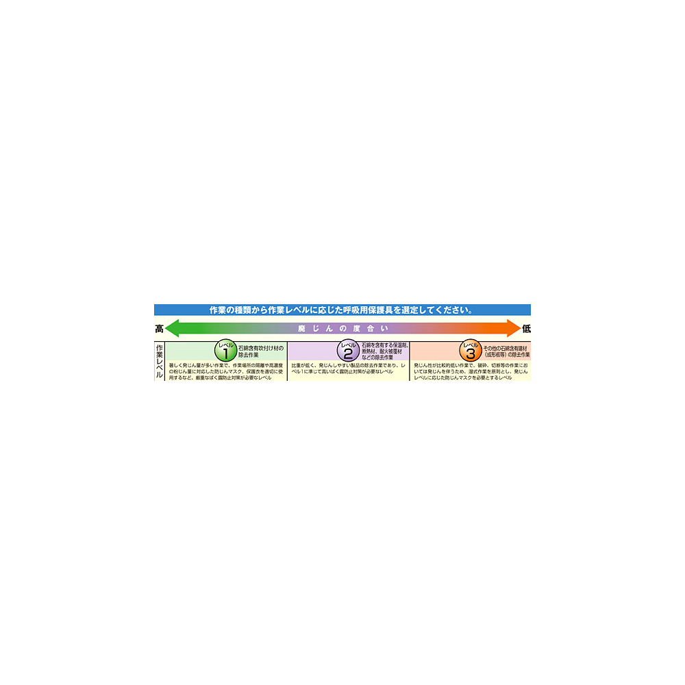 - *作業の種類から作業レベルに応じた呼吸用保護具を選定してください。*