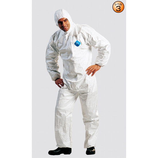 - タイベック?素材を使用したタイベック?製防護服は、粒径05ミクロンの粉じんに対し99%以上のバリアー性を有しています。また、タイベック?防護服は低コストのため一度の使用で廃棄処分にできるので、防護服に付着した粉じんが作業場から持ち出されることがなく、周辺環境での二次汚染を防止します。厳重な管理下で各種の装備や機械を使用しての作業環境の中で、タイベック?製防護服は軽量で、透湿性のある生地が内部の蒸気を逃がすため、快適に作業効率を向上させます。