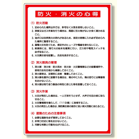 商品説明:防火標識 防火・消火の心得 (319-15A)