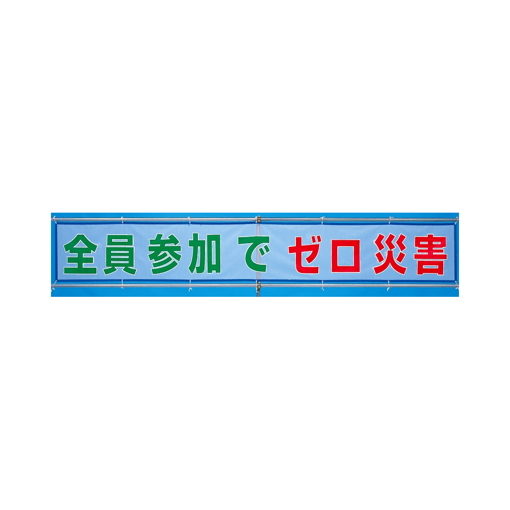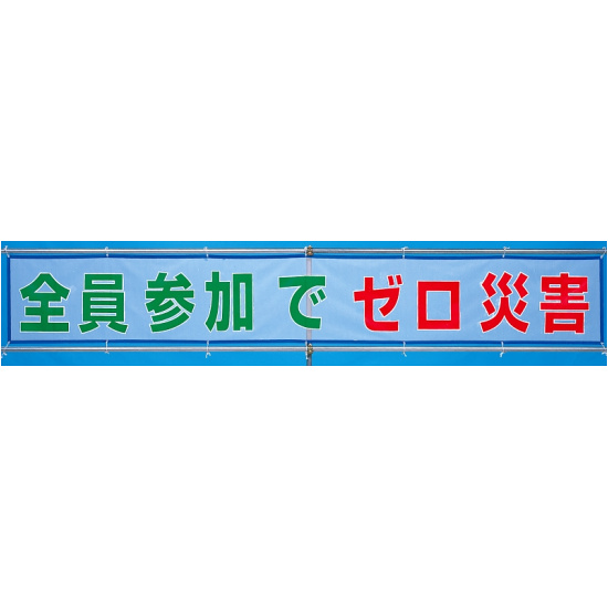 商品説明:メッシュ横断幕 全員参加でゼロ災害 (352-32)
