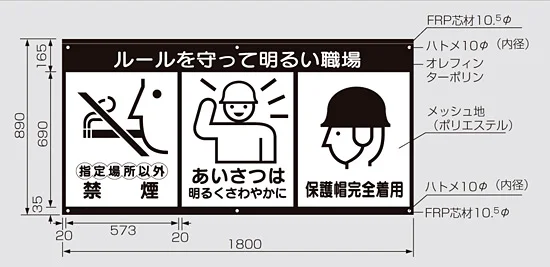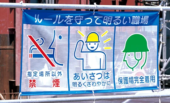 - メッシュ横断幕 全員参加でゼロ災害
