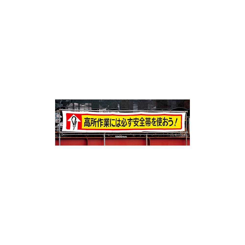 商品説明:横断幕 あらゆる手段で墜落災害を絶滅.. (352-04)