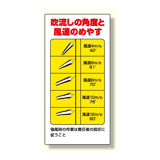 - 玉掛関係標識 吹き流し角度と風速のめやす