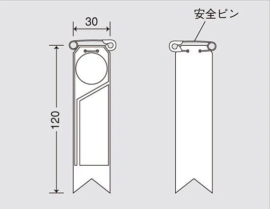 - 材質:軟質ビニール(上部安全ピン付)