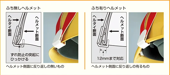 ■ヘルメットのふち無しと、ふち有りのどちらにも使用できる共用タイプ !