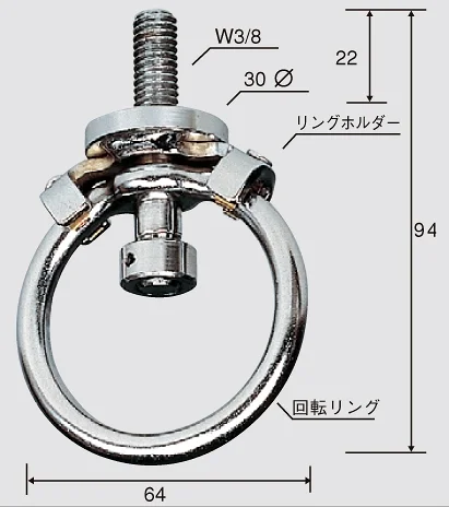 - ● 最大許容荷重1900kgfの堅牢さ。 引張り強度テストによる最大許容荷重は1900kgf。インサート金具と回転リングがシッカリ固定されて安全です。