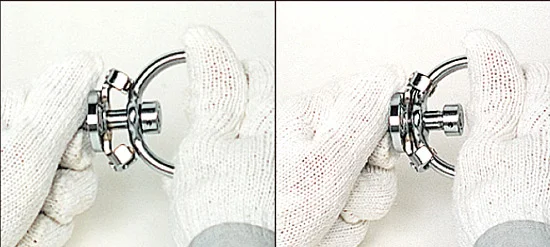 ■使用方法2.回転リングを手で回して、ボルト部をインサート金具に確実にねじ込みます。