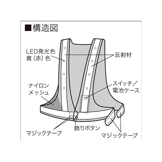 商品説明:LED反射ベスト黄 (赤LED) (379-643)