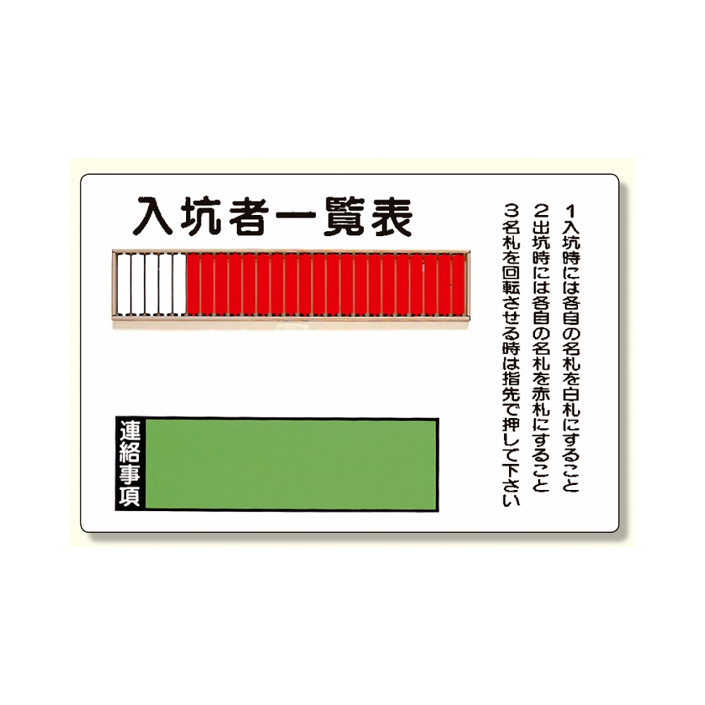 入坑札のみと違い、一覧表の余った部分を酸素濃度等の測定値表示欄、連絡事項欄は当日のKY事項を記入して活用しています。