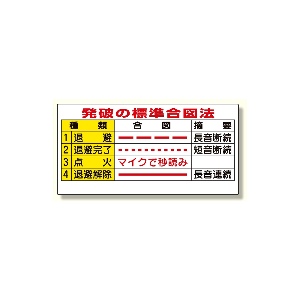 商品説明:ずい道用関係標識 発破の標準合図法 (324-12)
