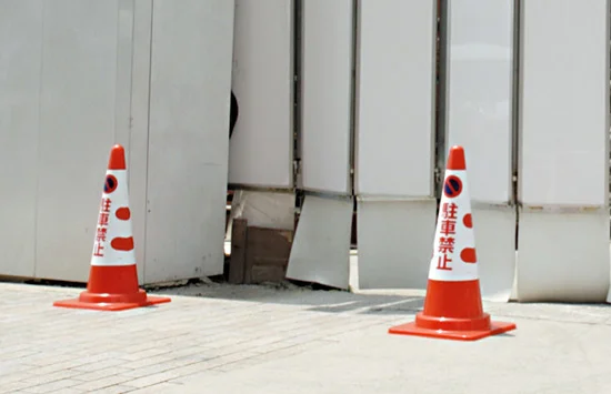 歩行者通路の区分を、コーン上でひと目で示しやすい表示カバー。