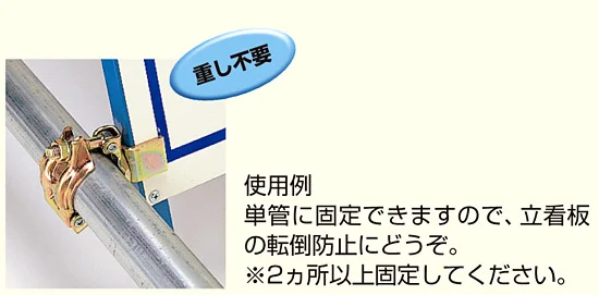 - 単管に固定できますので、立看板の転倒防止にどうぞ。※2ヵ所以上固定してください。