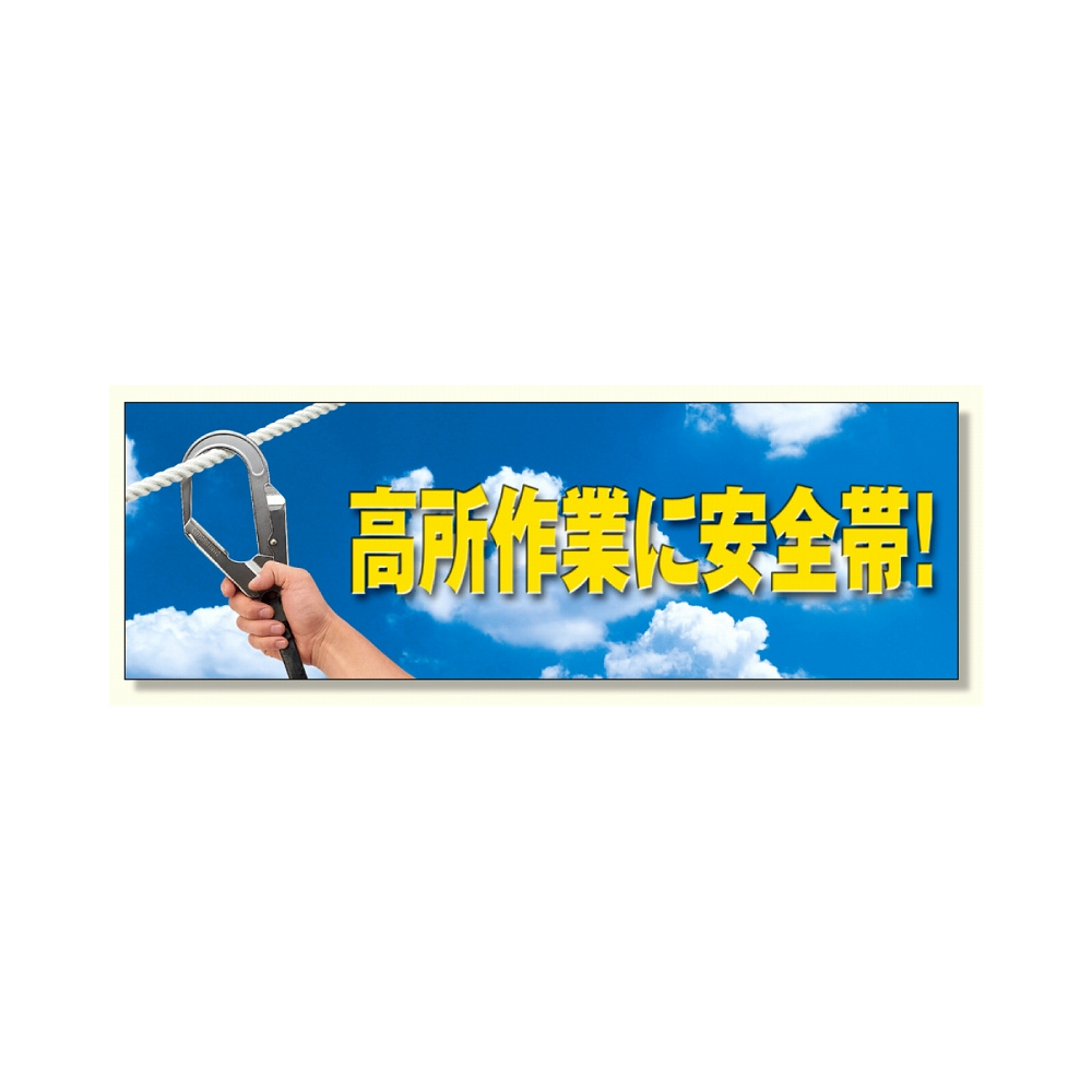建設現場用 横断幕 スーパージャンボスクリーン W5.4×H1.8m 高所作業に安全帯 メッシュシート製 (920-35)