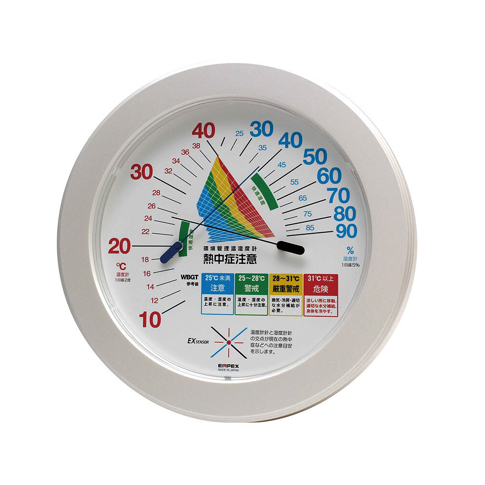 商品説明:熱中症注意目安付温湿度計 直径230mm (HO-401)