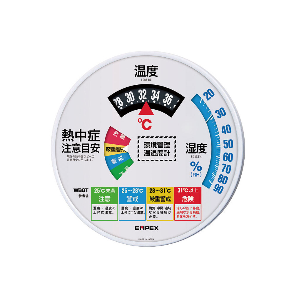 熱中症注意目安付温湿度計 直径300mm (HO-402)