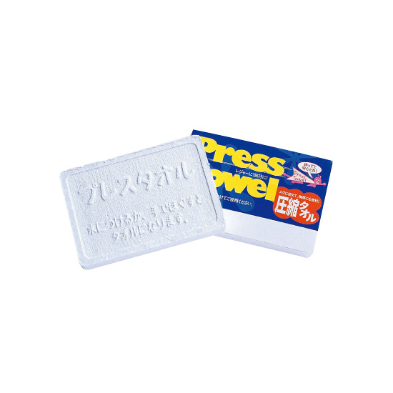 - 水に浸けるか、手でほぐすと、一般的な洗面タオルサイズの大きさになります。