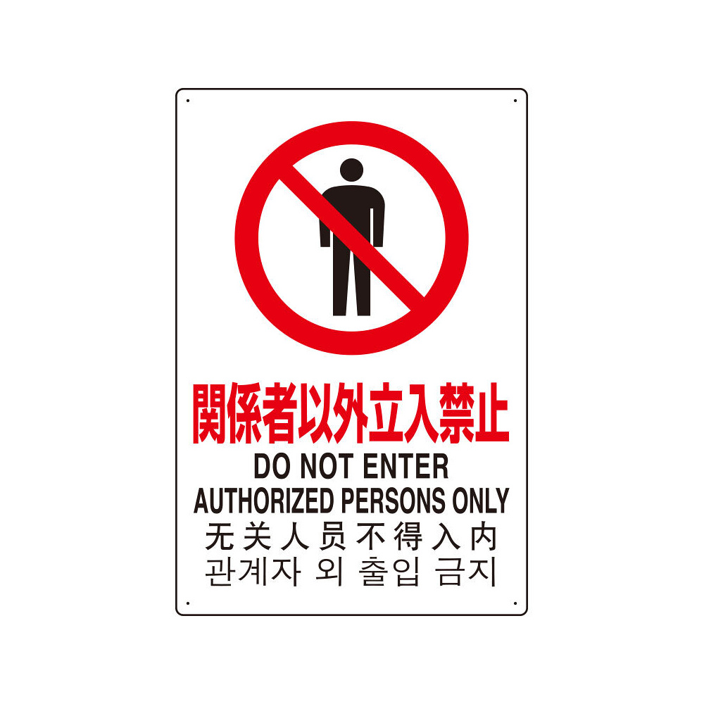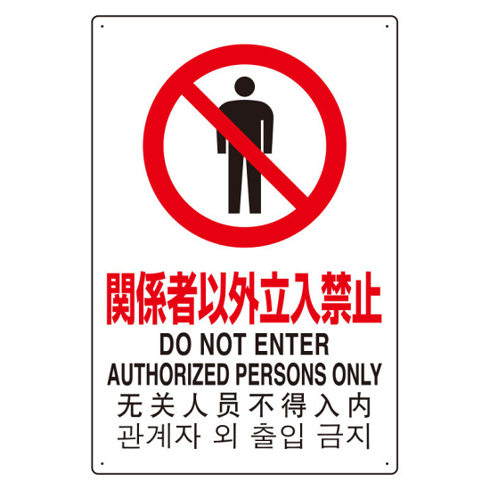 4カ国語標識 平板タイプ アルミ製 関係者以外立入禁止 H450×W300(802-901)