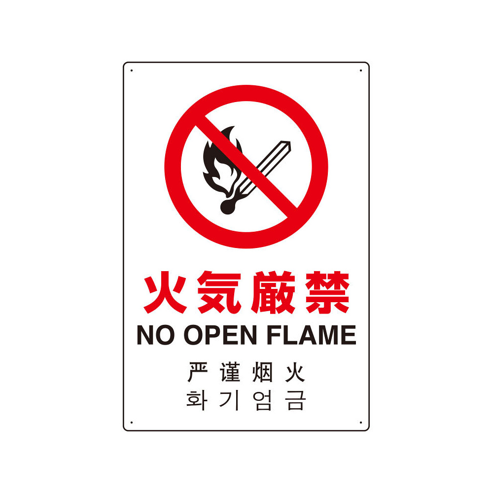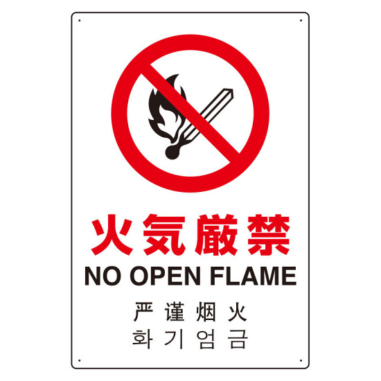 4カ国語標識 平板タイプ アルミ製 火気厳禁 H450×W300(802-903)