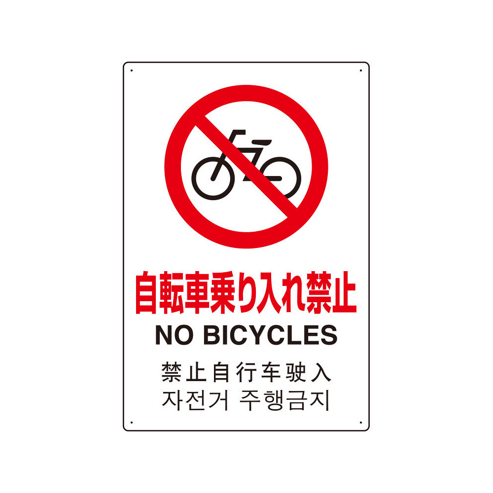 4カ国語標識 平板タイプ アルミ製 自転車乗り入禁止 H450×W300(802-909)