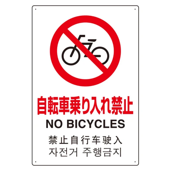 「日英中韓4カ国語 アルミ JIS規格安全標識 450×300 自転車乗り入禁止 (802-909)」の導入をご検討中ですか? 大量注文・複数台のご検討に応じたお見積りのご相談、最短納期や送料、仕様・サイズの確認など、 多言語(4ケ国語表記)標識選びをまとめてサポートいたします。