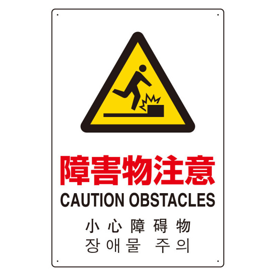 4カ国語標識 平板タイプ アルミ製 障害物注意 H450×W300(802-913)