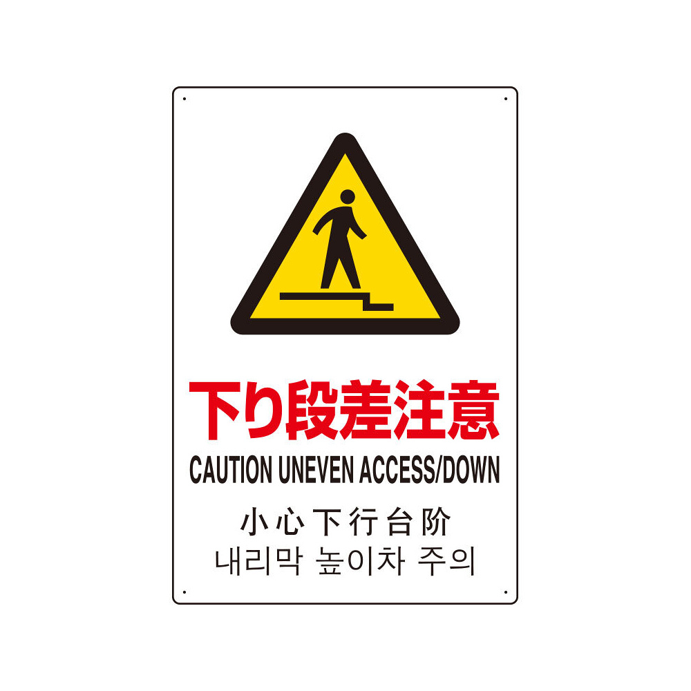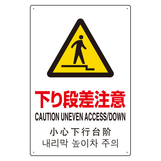 4カ国語標識 平板タイプ アルミ製 下り段差注意 H450×W300(802-915)