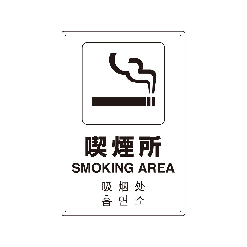 4カ国語標識 平板タイプ アルミ製 喫煙所 H450×W300(802-917)